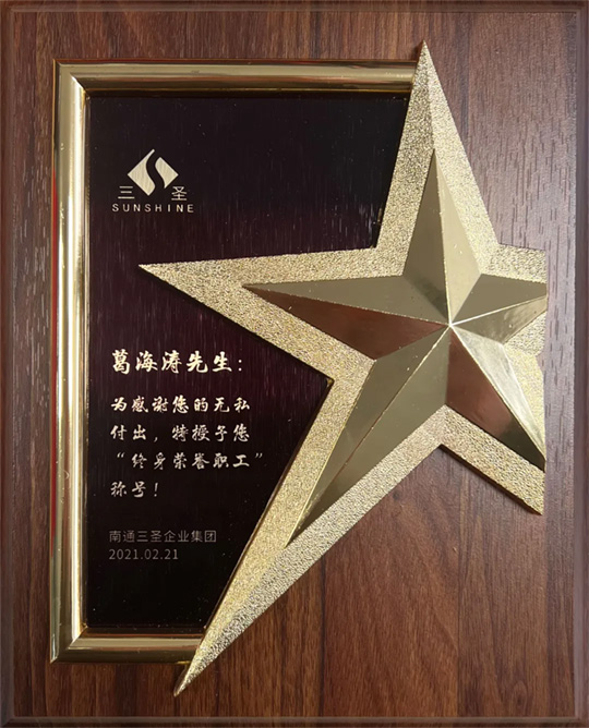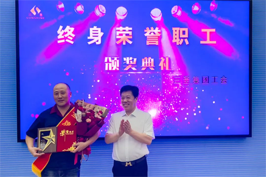 三圣奮斗史中閃耀著這樣一顆璀璨之星,他以堅(jiān)定的信念和不懈的努力,登上榮譽(yù)巔峰,成為開(kāi)發(fā)區(qū)當(dāng)之無(wú)愧的一名“金牌員工”,并被三圣集團(tuán)董事會(huì)、三圣工會(huì)授予“終身榮譽(yù)職工”的光榮稱(chēng)號(hào)。