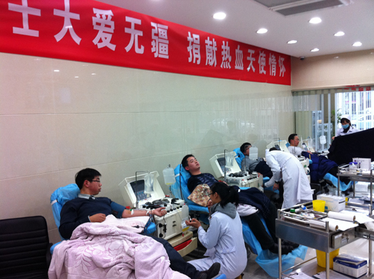 1月19日,患病同事趙亞東的家屬向公司發(fā)出了緊急求援,希望能有同事為趙亞東定向捐獻(xiàn)成分血。短短的半小時(shí),質(zhì)檢部劉小冬、朱浩,國際部石玉成,事務(wù)部嚴(yán)建新在殷總的帶領(lǐng)之下迅速趕到市血站下屬的愛心獻(xiàn)血屋獻(xiàn)血。雖然遺憾的是,由于捐獻(xiàn)成分血對(duì)捐獻(xiàn)人的各項(xiàng)身體指標(biāo)要求較高,五人均未達(dá)到要求,但他們的善舉仍然讓趙亞東的家屬非常感動(dòng)。與此同時(shí),公司、工會(huì)、愛心基金會(huì)聯(lián)合發(fā)出了為趙亞東獻(xiàn)血倡議,率先得知消息的科室員工積極響應(yīng),紛紛簽字響應(yīng)獻(xiàn)血倡議,稍后得知消息的生產(chǎn)部員工也是積極響應(yīng),紛紛表示愿意為趙亞東獻(xiàn)血,甚至考慮到春節(jié)期間的用血。